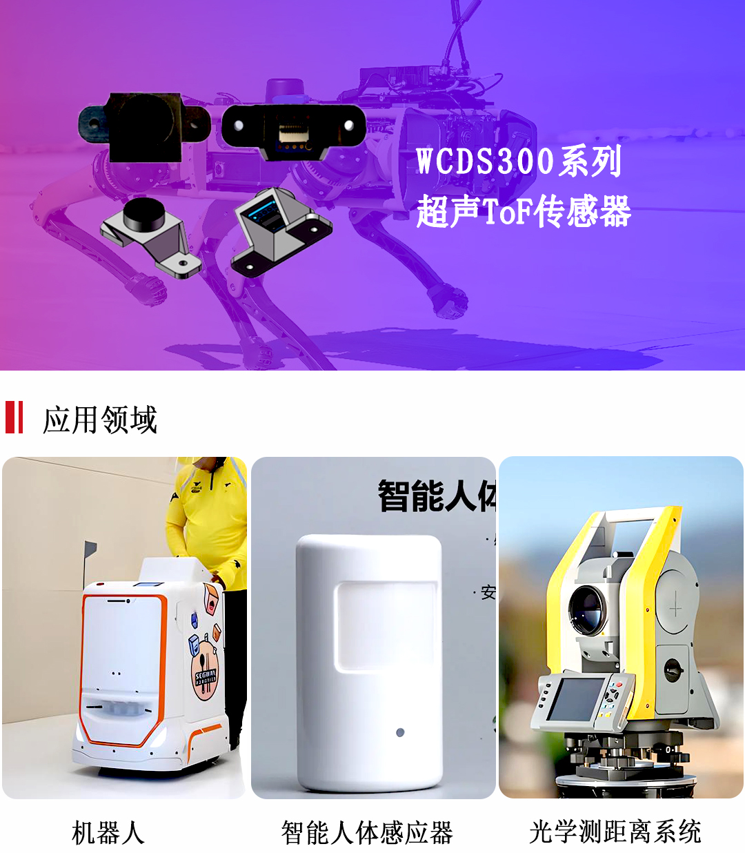 WCDS300系列超聲ToF傳感器測量距離為2/4m,精度為1mm,廣泛在機(jī)器人避障、無人機(jī)避障、安防、人體感應(yīng)、光學(xué)測距離系統(tǒng)等廣泛應(yīng)用。